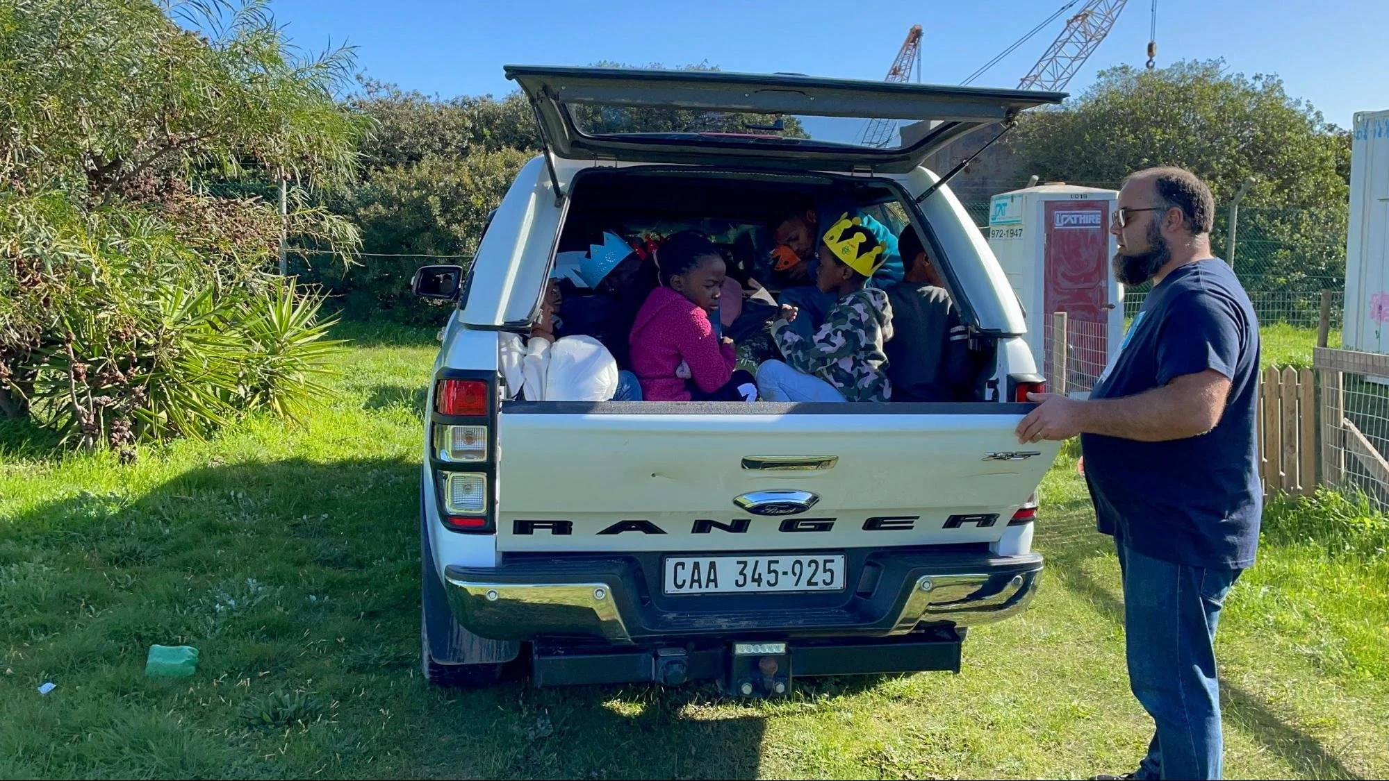 After a quick breakfast, our household headed over to the other house full of P2P-ers and we set off in the two CUDDLE Trust branded ‘buckie’ vehicles to head up to the Fundani container classroom in Wolwerivier.