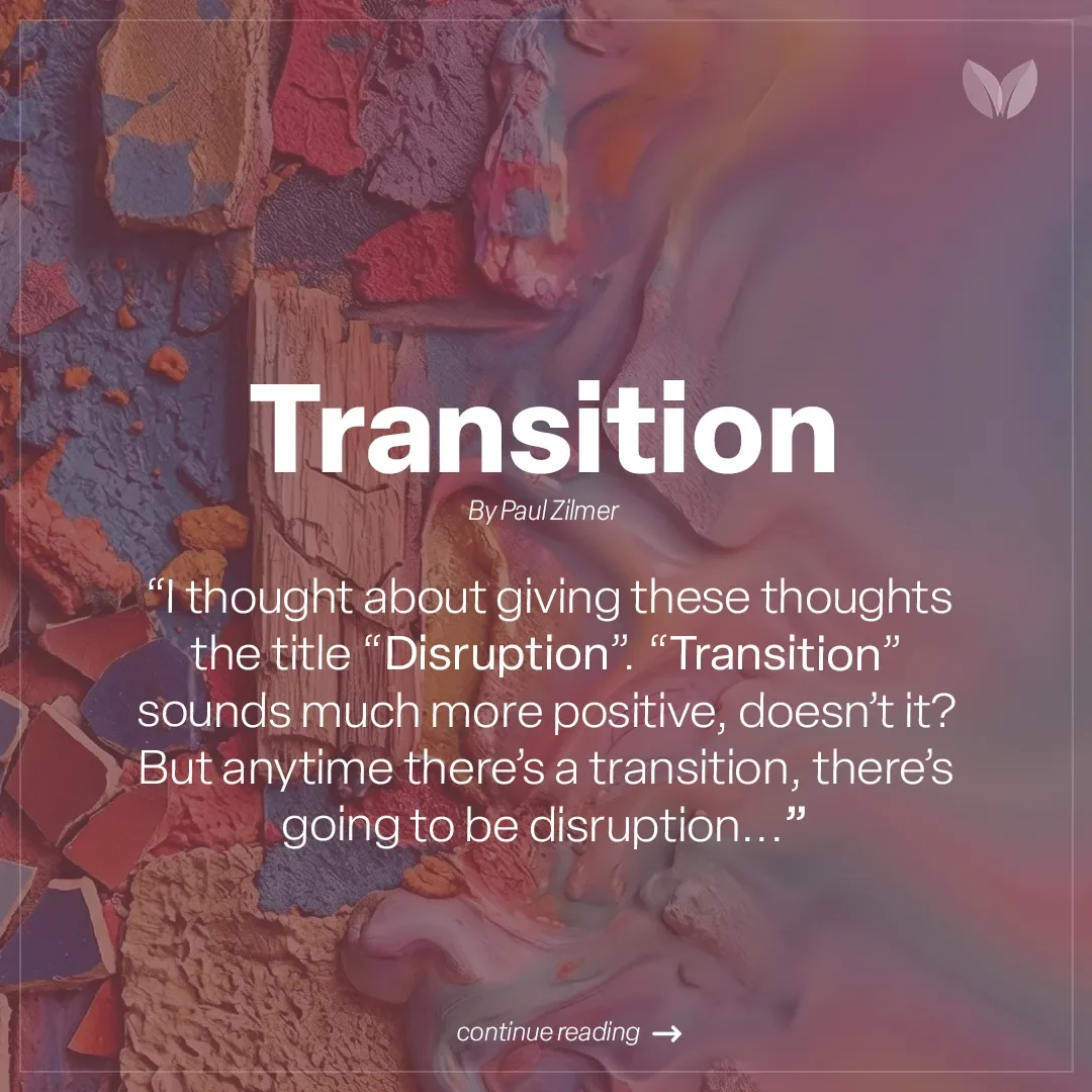 I thought about giving these thoughts the title “Disruption”. “Transition” sounds much more positive, doesn’t it? But anytime there’s a transition, there’s going to be disruption. There are a handful of important transitions recorded in scripture, and all of them are disruptive.