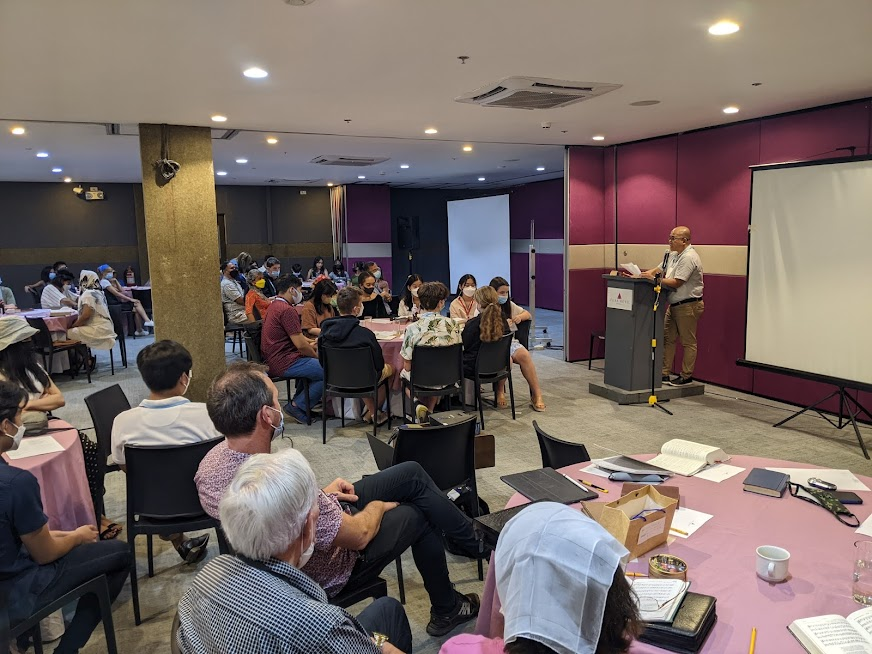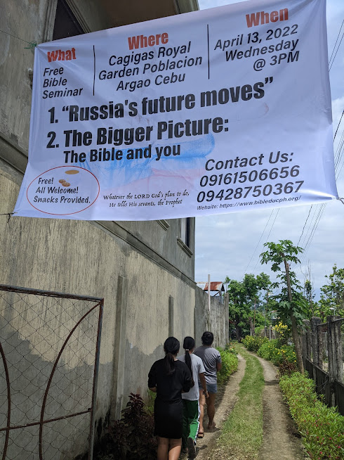 Afterwards, we had lunch and a memorial service at the hotel with the Quezon City ecclesia. This was the first time for many of the Quezon City ecclesia to actually see each other since the pandemic started, and there was much rejoicing. After a break, we then had a Sunday School presentation, where the Quezon City Sunday School (distinct from the Sunday School in the Street) sang some songs to us, and recited memory verses. We sang "Happy Birthday" to Sis. Rose Stone from Australia, had some cake, and watched Nat Mansfield give a standard Christadelphian explanation of Ezekiel 38, with lots of Bible-marking involved.