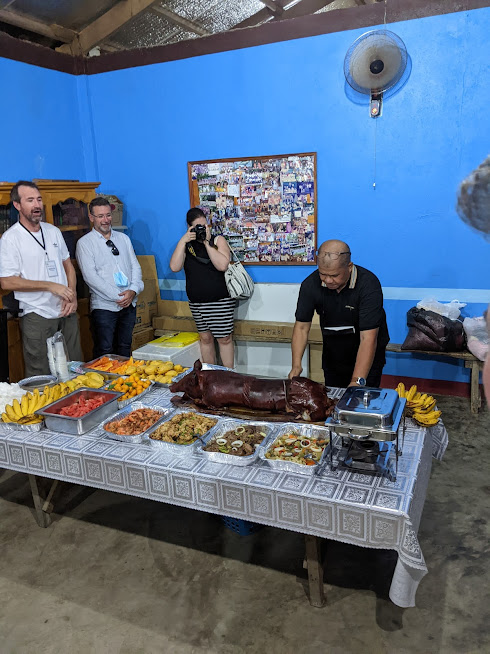 Afterwards, we had dinner with the Argao ecclesia at the Argao ecclesial hall, including a suckling pig sliced by our Bro. Noli Lagasca. We then finished off the day with a class at the ecclesial hall by Bro. Nat Mansfield on the parable of the 10 virgins. Tomorrow we are waking up early again to catch our flights to Camiguin island, and the Philippine summer Bible school will commence.