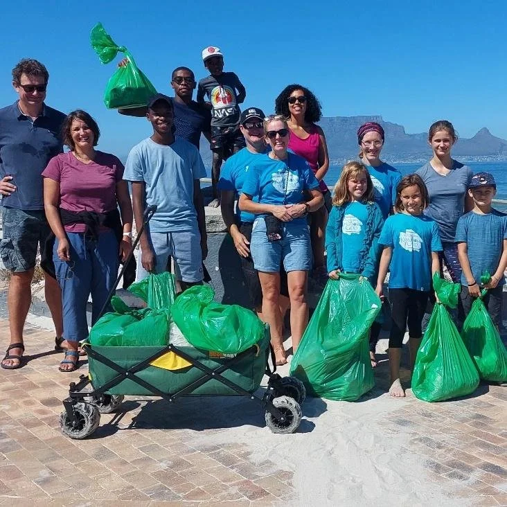 Beach clean-up time at Bloubergstrand Rock pools. We were joined by our French volunteers, Keletso Bongani Ndlovu, Sipho (who has recently moved to Cape town from Kempton Park) and also some friends of Lilandi’s. There were also a few other people who signed up on the day. Trying to make a difference with the environment clean ups and lots of opportunities created to have conversations with others. We once again donned our bright blue t-shirts and met together to do a few beach clean-ups. This has now become an international effort with various groups across the globe getting together to help make a difference to the environment.